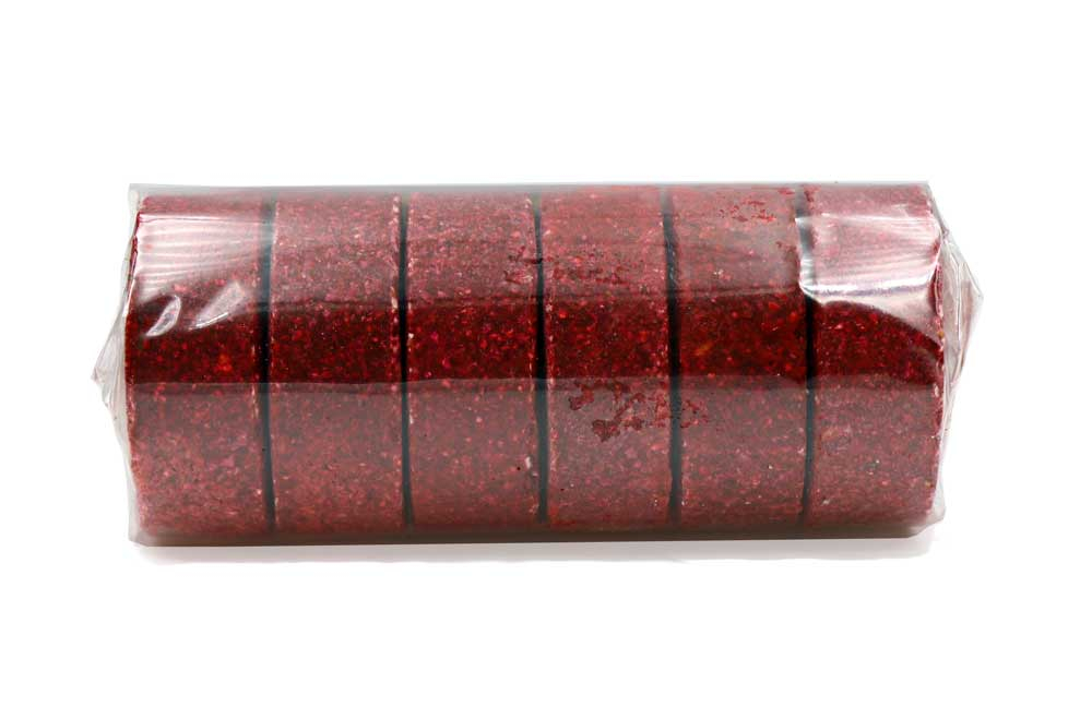 В каждой шайбе имеются отверстия для крючков. Время растворения до ½ размера брусочка в стоячей воде примерно 4-6 часов, в зависимости от воздействия внешних факторов (температура воды, наличие мелкой рыбы и прочее). Время растворения кубика при ловле в условиях реки, уменьшается за счет воздействия течения водного потока и зависит от его интенсивности.