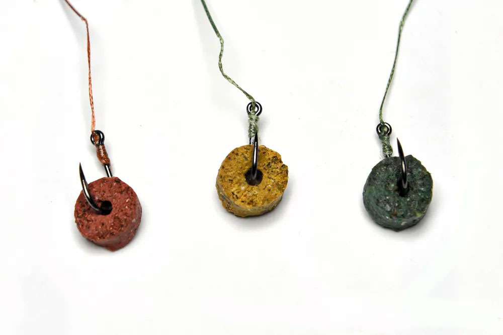 Колечки пылящие - эта рыболовная насадка на крючок, выполненная в виде прессованного кольца из мелко фракционной прикормочной смеси. В некотором роде данные колечки схожи с такой популярной рыболовной насадкой, как звездочки из теста. Колечки удобны и универсальны, подходят для ловли мирной рыбы различными способами. Самый простой и быстрый способ ловли с помощью поплавочной удочки, для этого достаточно продеть в отверстие колечка жало крючка и расположить его на поддеве, после чего совершить заброс оснастки. При дальних и силовых забросах оснастки, колечки нужно чем-либо зафиксировать, например маленьким шариком пенопласта, силиконовым опарышем, небольшим кусочком теста или частью натуральной насадки.