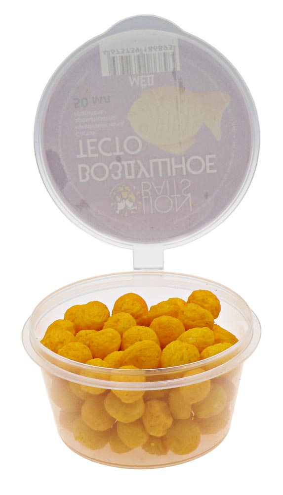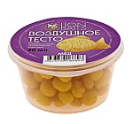 Воздушное тесто мед – это плавающая насадка в виде шариков из кукурузного теста правильной формы, размером 5-7 мм с пористой и мягкой структурой. Плавающая насадка легко нанизывается на крючок и от 20 до 40 минут удерживается на нем, соблазняя на поклевку карасей, карпов, лещей, язей и других рыб. Насаживать шарики воздушного теста можно двумя способами:
