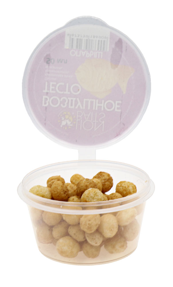 Воздушное тесто упаковано в пластиковый контейнер, во избежании быстрого черствения шариков, рекомендуется после каждого извлечения насадки плотно закрывать крышку.