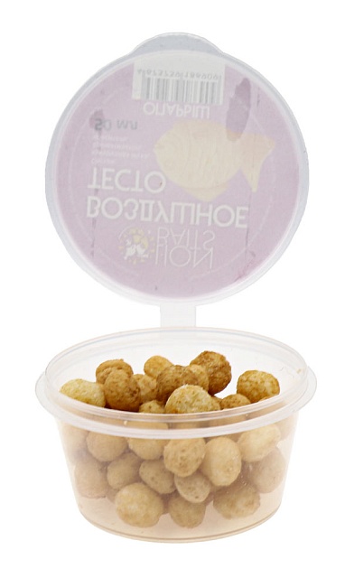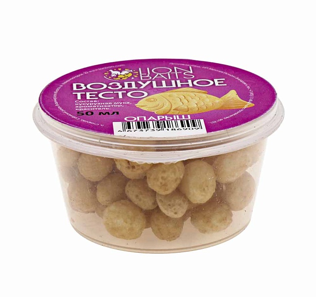 Воздушное тесто опарыш – это плавающая насадка в виде шариков из кукурузного теста правильной формы, размером 5-7 мм с пористой и мягкой структурой. Плавающая насадка легко нанизывается на крючок и от 20 до 40 минут удерживается на нем, соблазняя на поклевку карасей, карпов, лещей, язей и других рыб. Насаживать шарики воздушного теста можно двумя способами: