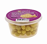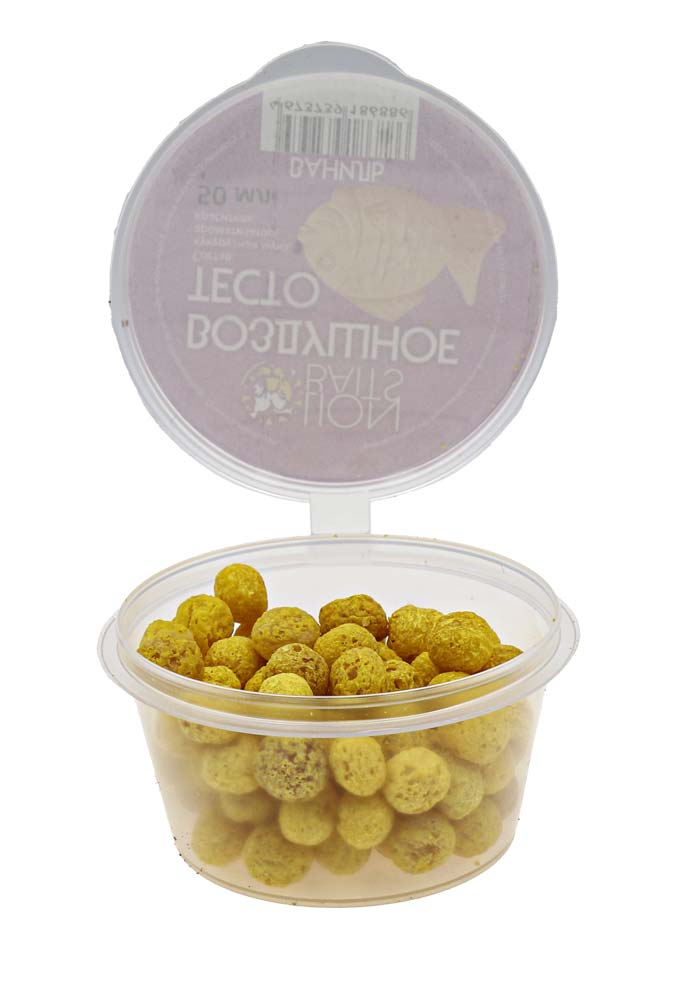 Воздушное тесто ваниль – это плавающая насадка в виде шариков из кукурузного теста правильной формы, размером 5-7 мм с пористой и мягкой структурой. Плавающая насадка легко нанизывается на крючок и от 20 до 40 минут удерживается на нем, соблазняя на поклевку карасей, карпов, лещей, язей и других рыб. Насаживать шарики воздушного теста можно двумя способами: