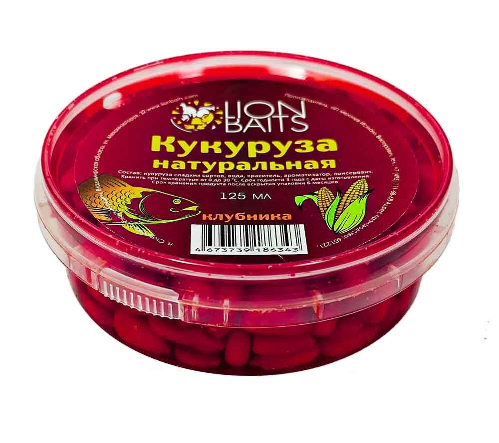 - Кукуруза натуральная LION BAITS Клубника 125мл