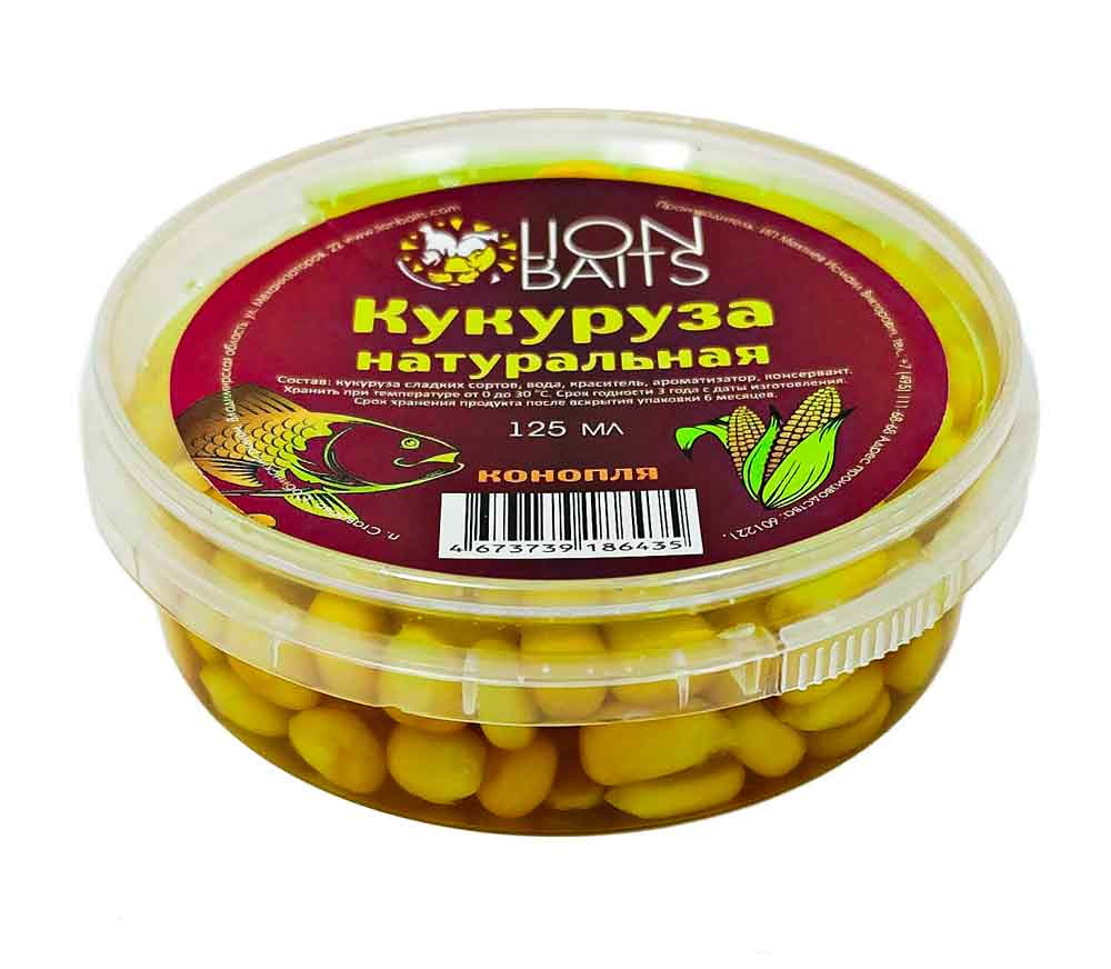 - Кукуруза натуральная LION BAITS Конопля 125мл