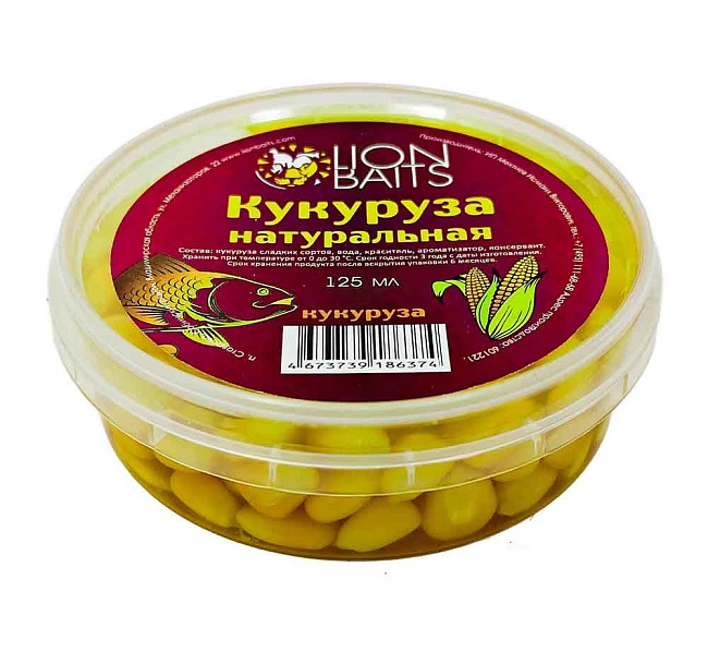 - Кукуруза натуральная LION BAITS Кукуруза 125мл