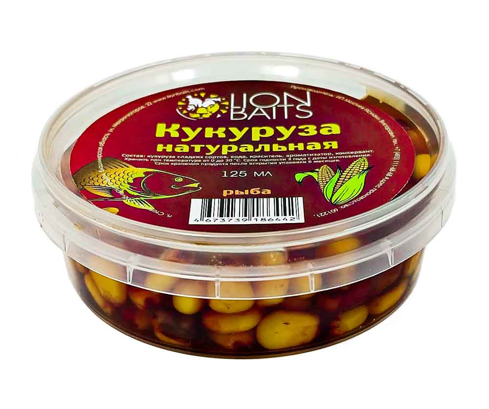 - Кукуруза натуральная LION BAITS Рыба 125мл